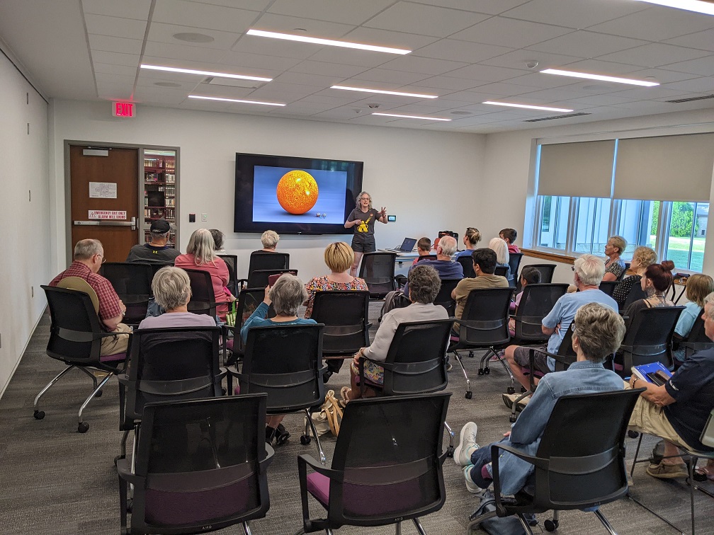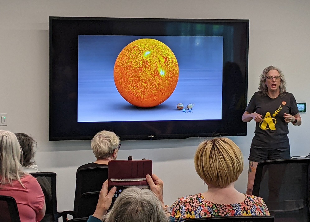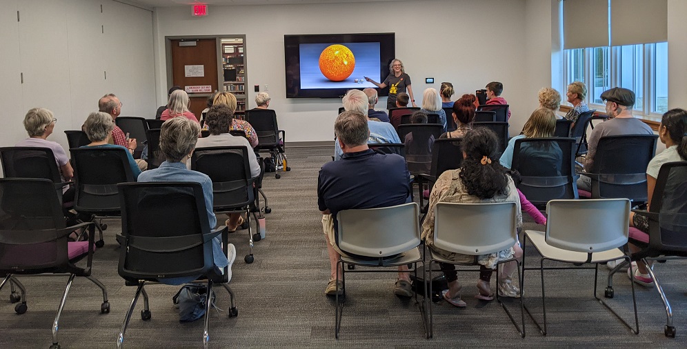 Michelle Nichols from the Adler Planetarium visited the library and presented her talk on the planets in our solar system to an enthusiastic group of teens and adults. We love Michelle’s passion for the stars! Here are a few photos from the event, but we highly recommend catching Michelle in person, if you can!