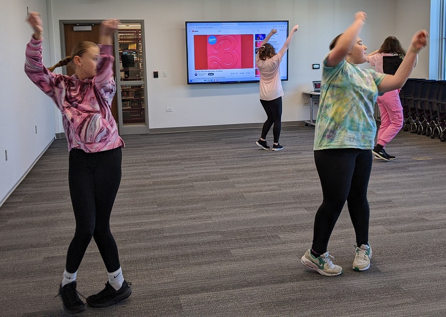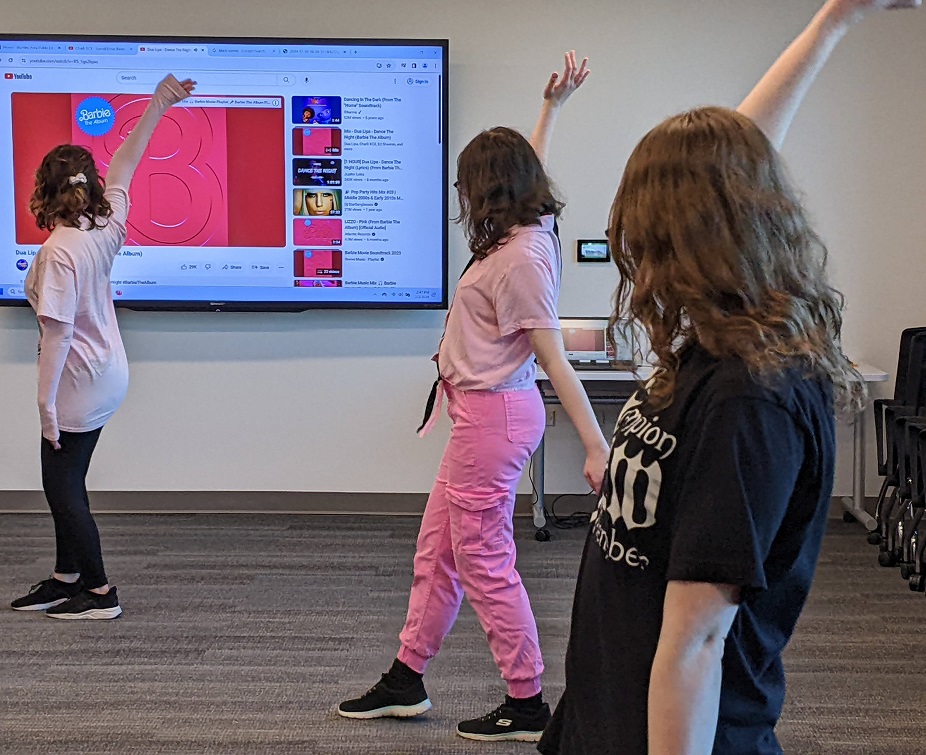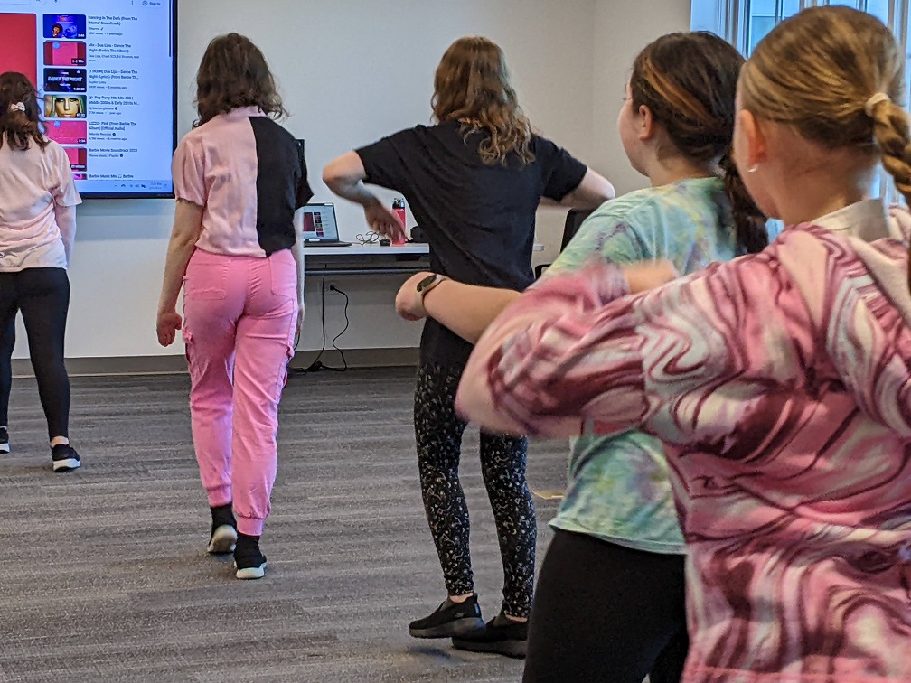 Participants tried out some choreography from the Barbie movie – broken down for us step by step – by dance instructor, Melanie Andersen. The last part was particularly challenging, featuring some jumps, kicks, and spins! Check out some photos from the event below.