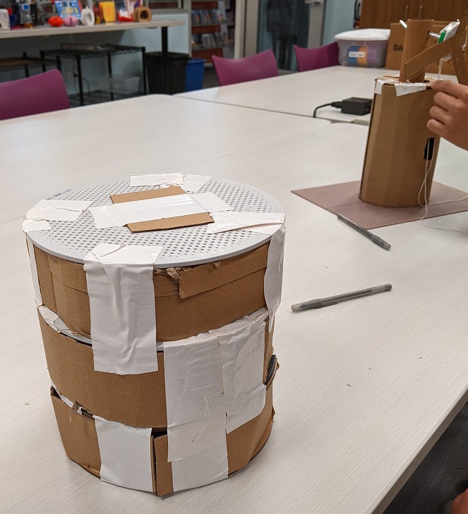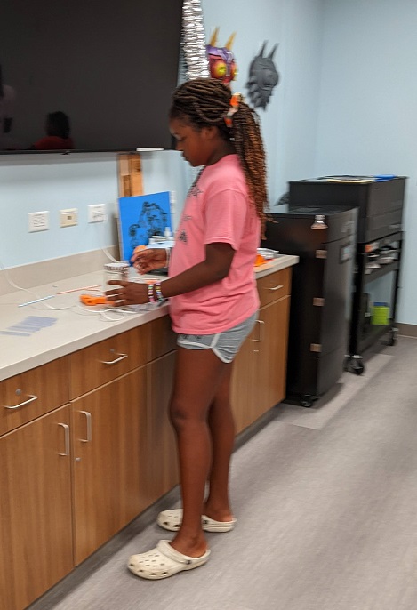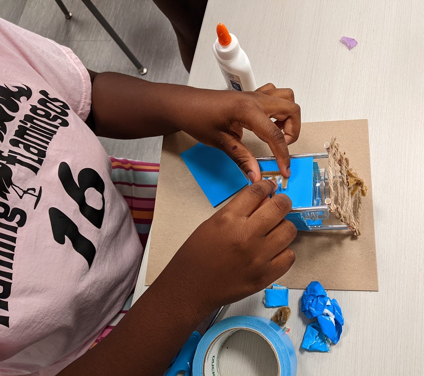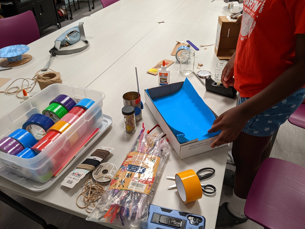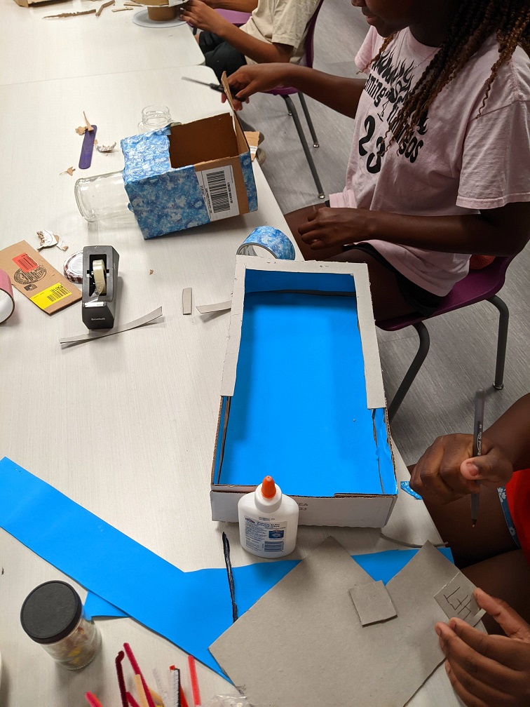 We hauled out some craft supplies and saved our recyclables this month so teens could repurpose them in new ways. Here are some of their creations: