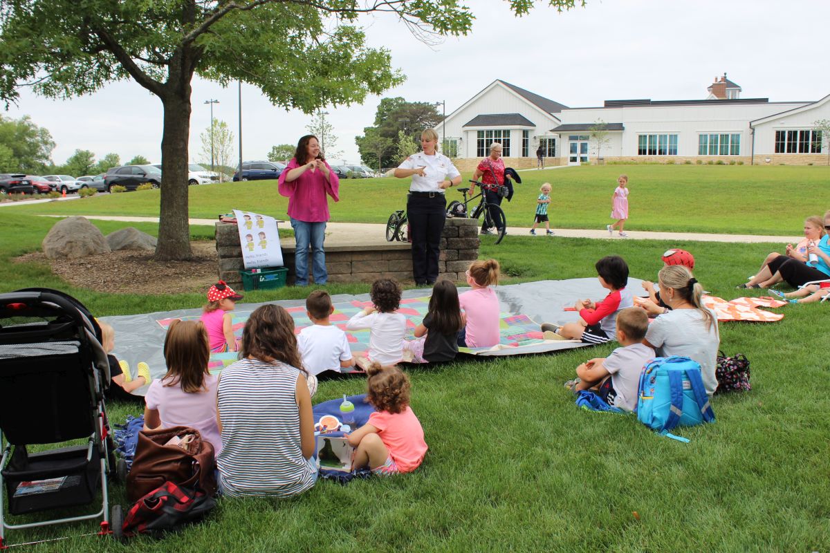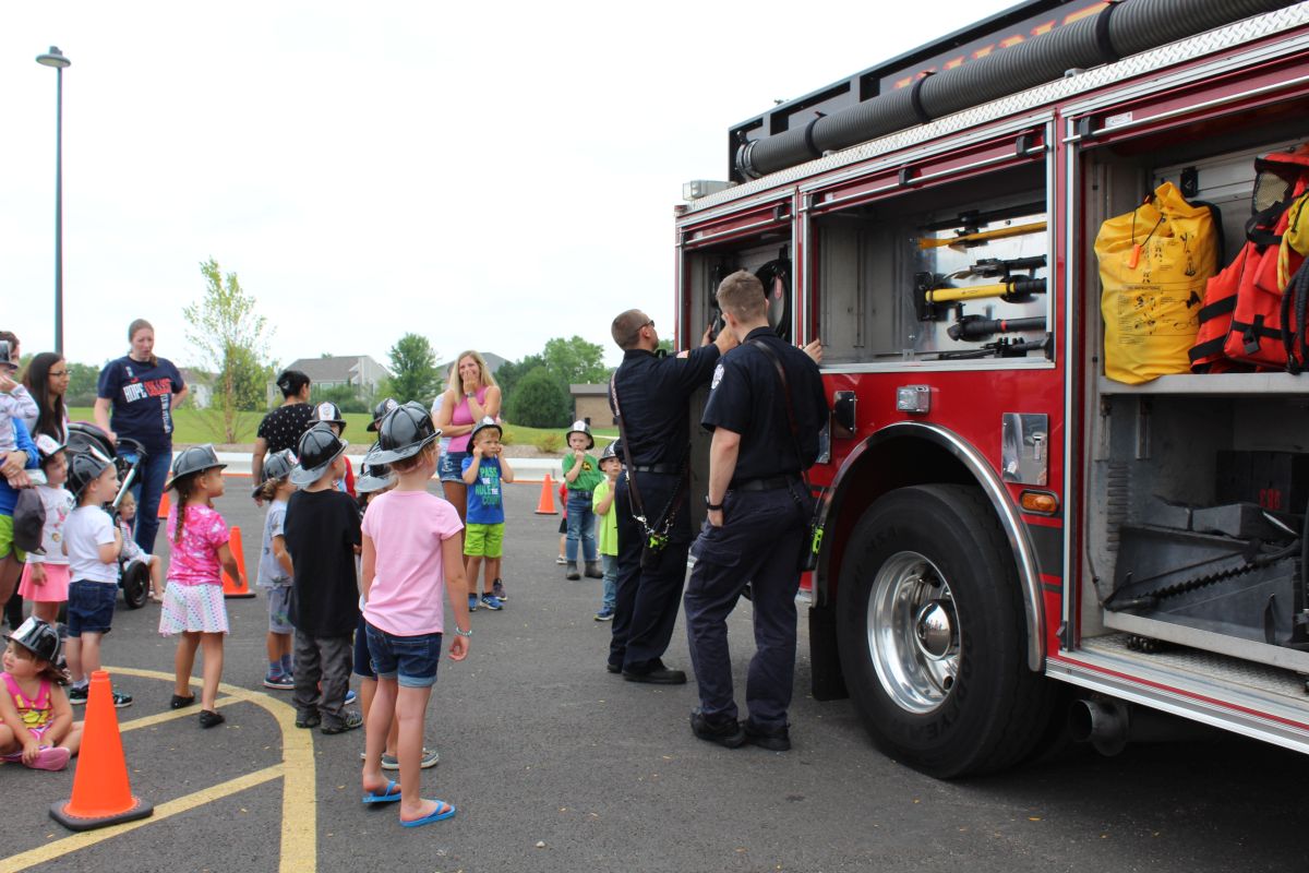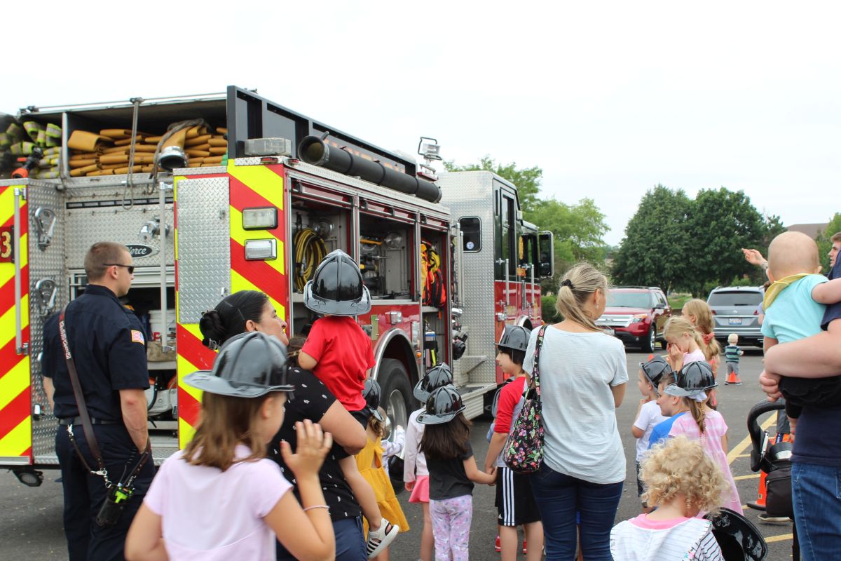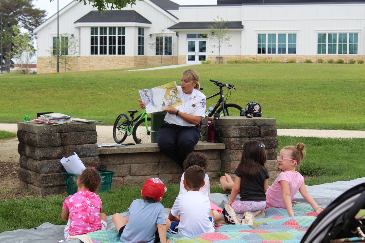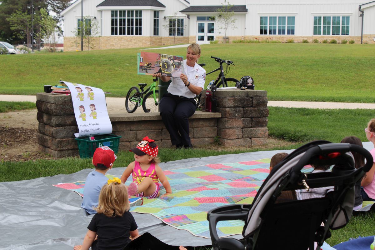 We’d like to thank Lieutenant Kelly and Huntley Fire Protection District friends for the amazing Family Story Time in the Park today. We had such a fun time. We got to listen to Lt. Kelly’s favorite stories, dance around with Miss Charise, and talk to the firemen who parked their fire engine in the library parking lot.