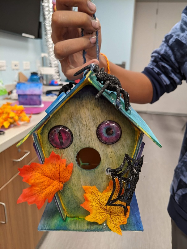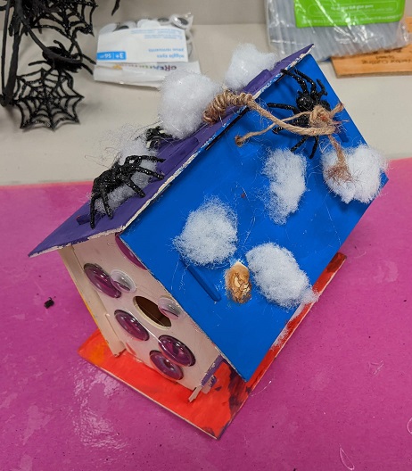 While we’re not sure if any actual birds will be attracted to these haunted houses that teens created at the library in October 2023, we did have a lot of fun creating them. Check out our creations below: