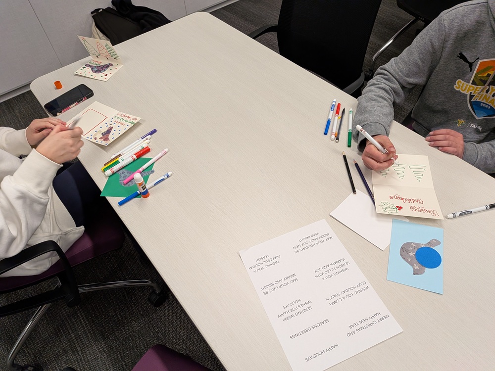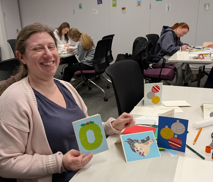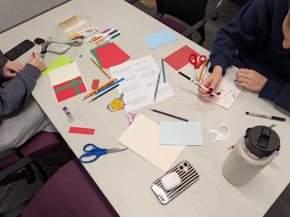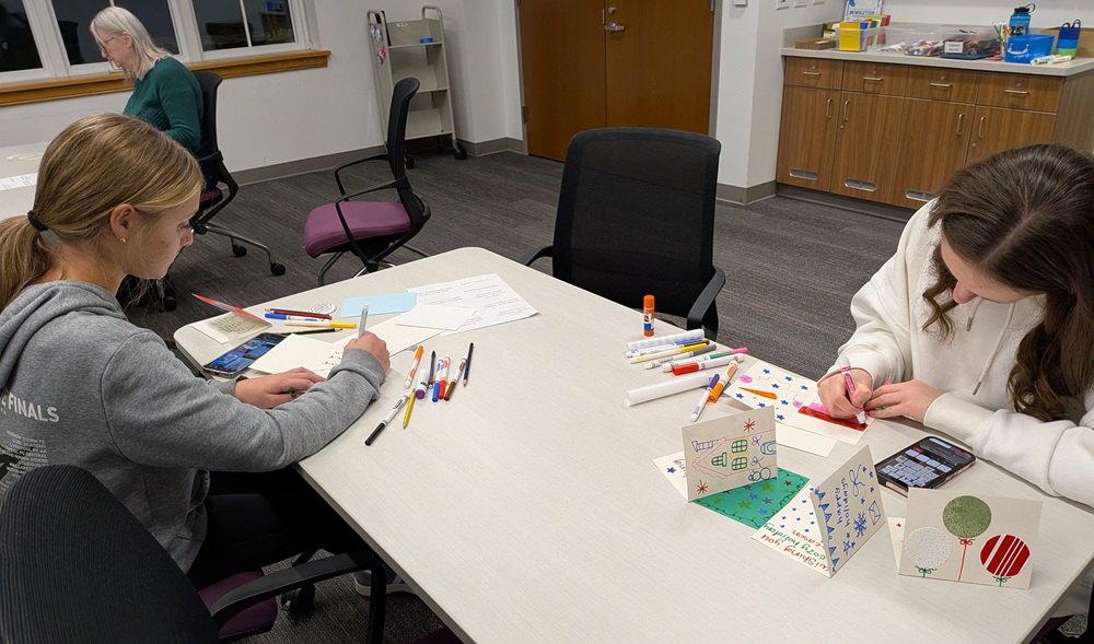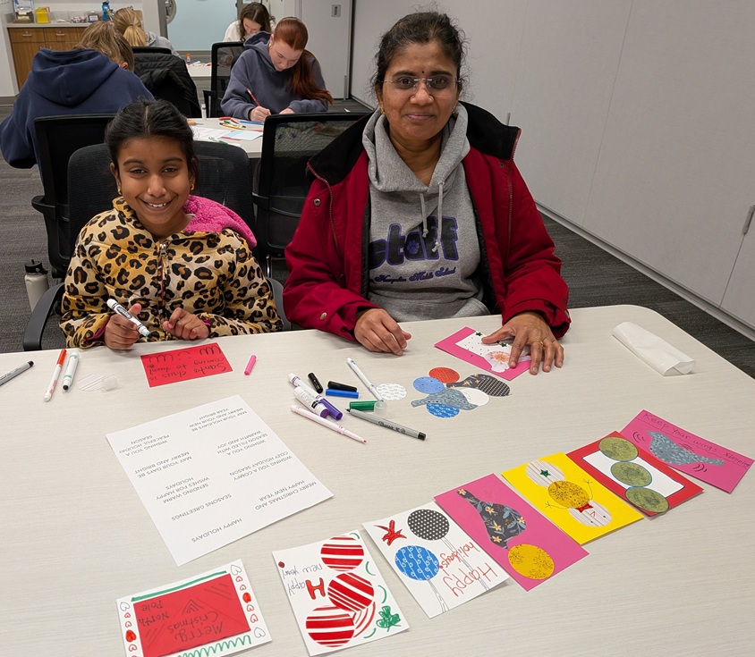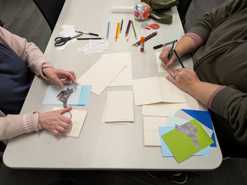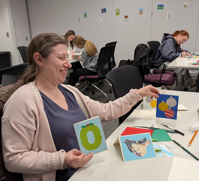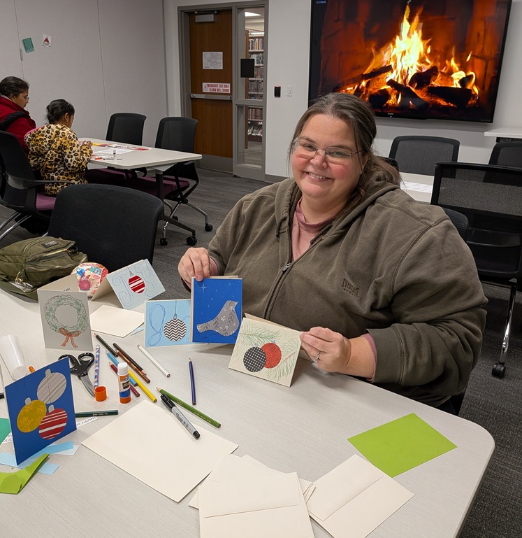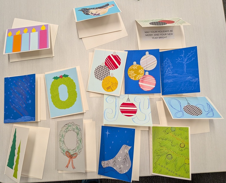 A nice group of people attended the library’s holiday card-making event and designed dozens of cards for friends, family, and folks in assisted living residences. Happy holidays!