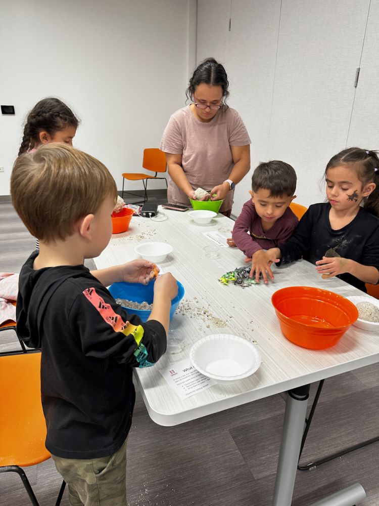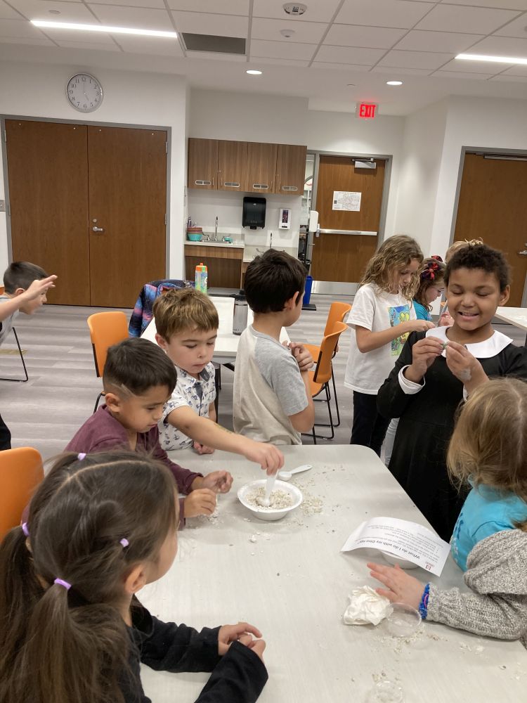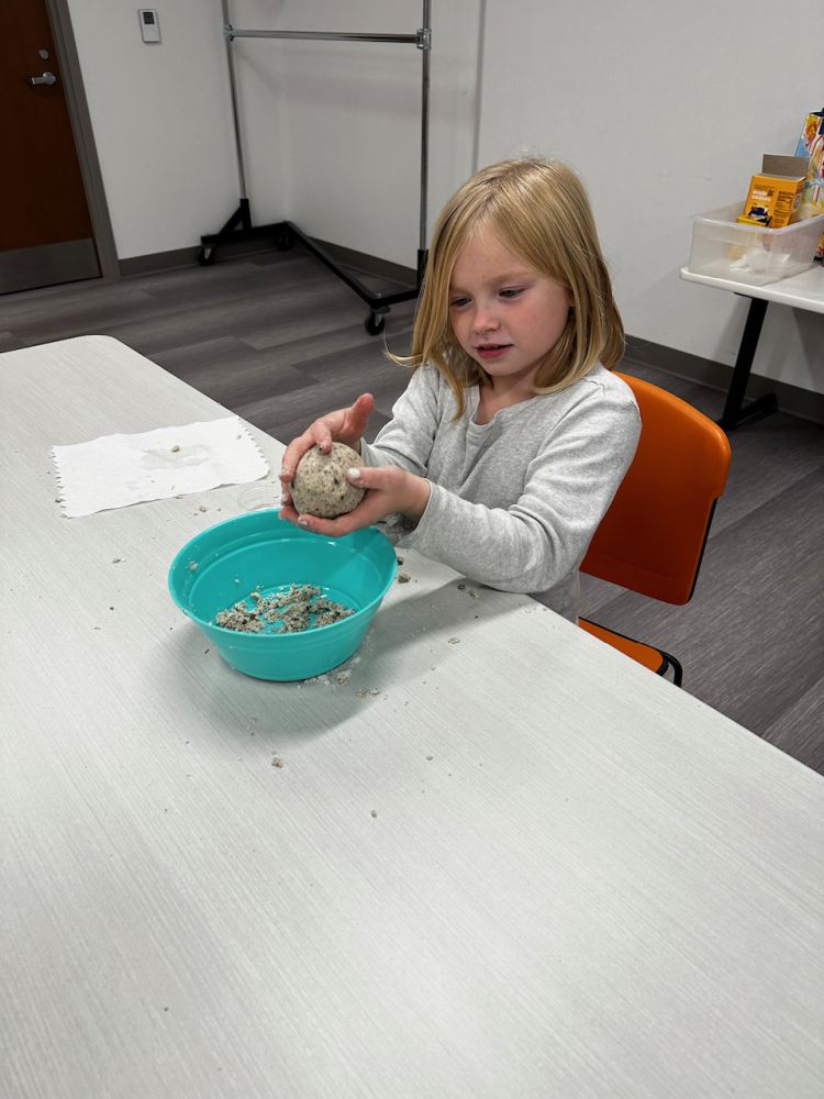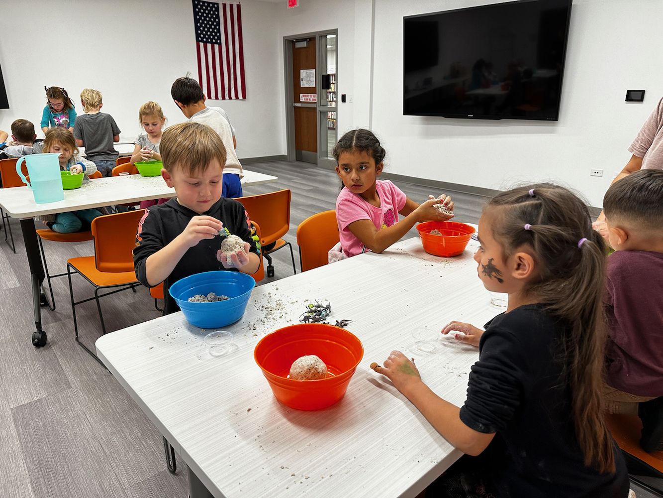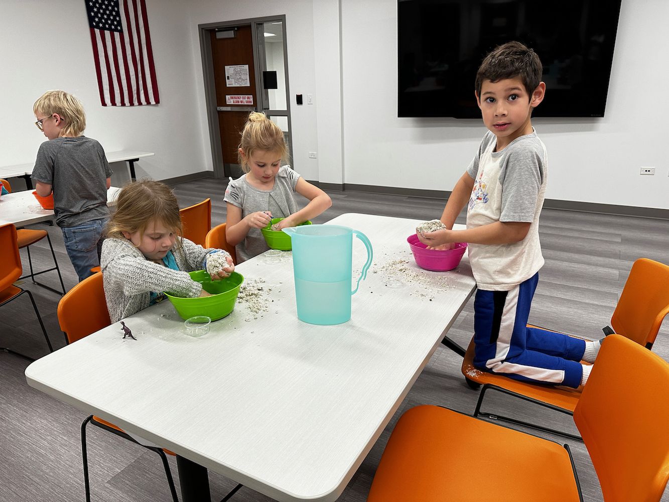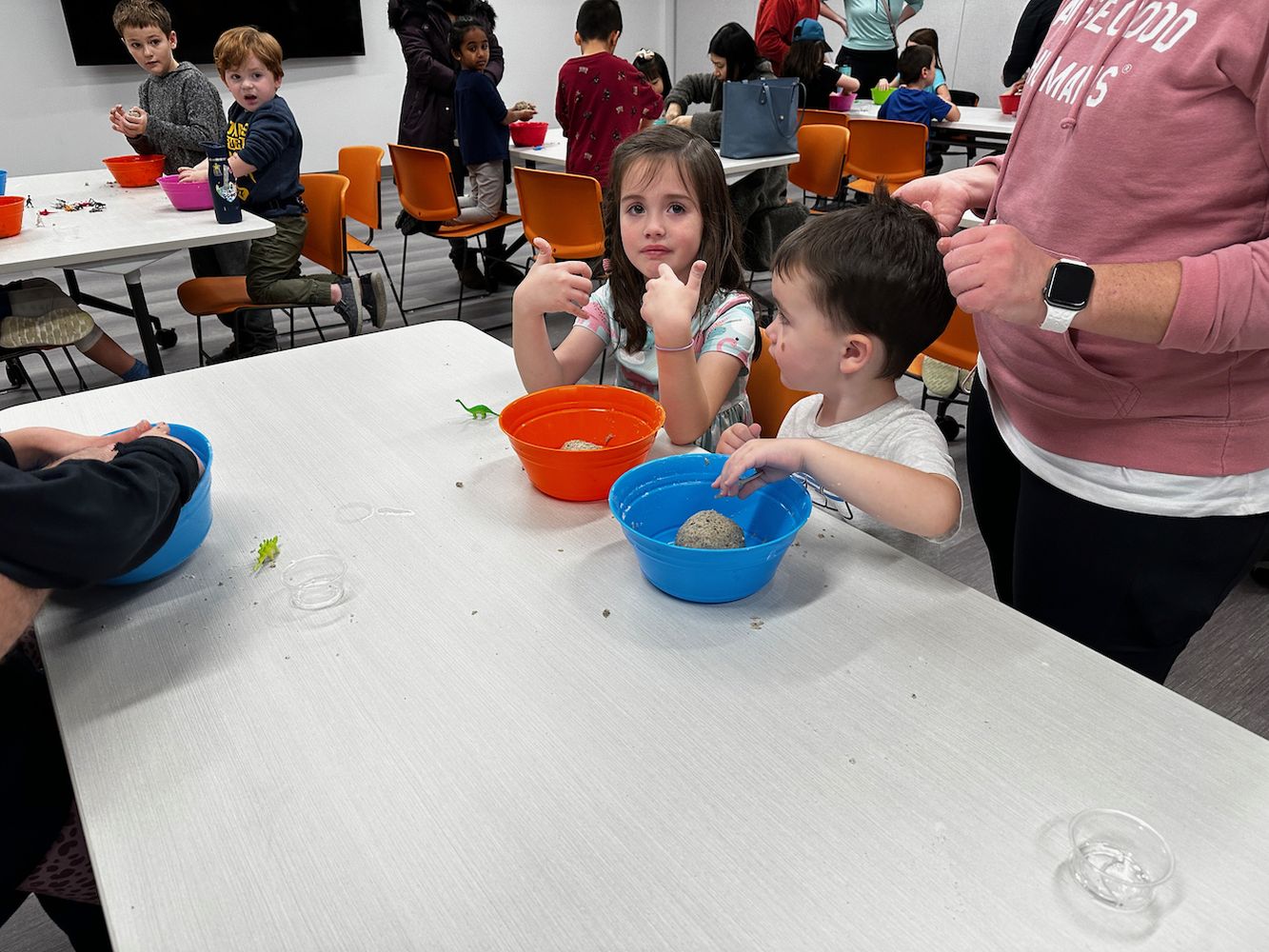 Roar! We read Eggasaurus by Jennifer Wagh about a child who received dinosaur eggs in the mail. Then we made our own dinosaur egg to take home, let dry, and break open later. Some kids sent us photos of their egg opening at home. What kind of dinosaur is your favorite?