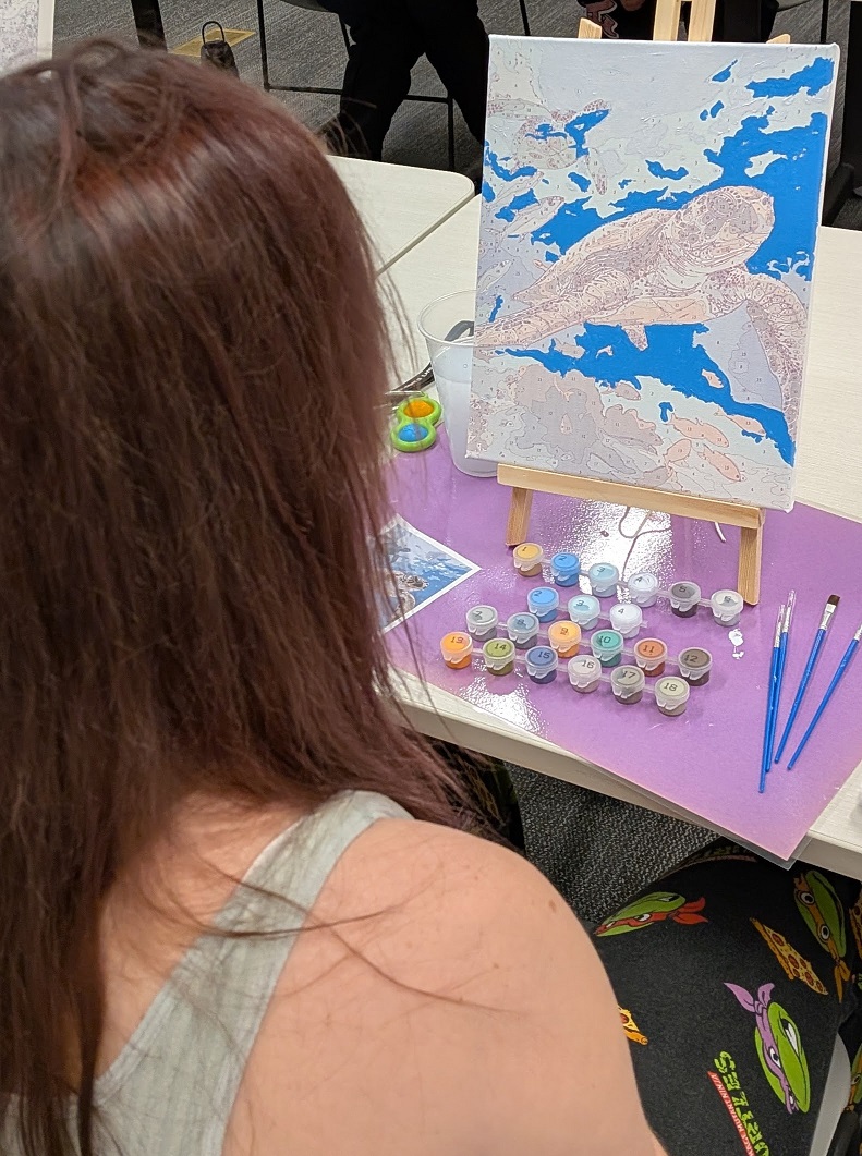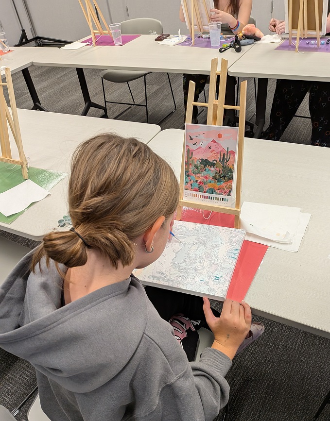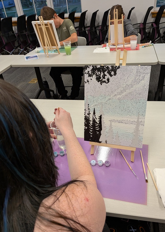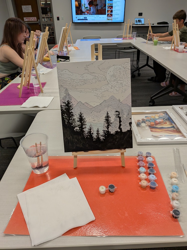 Teens attempted some beginner-friendly paint by number kits at our Art After Dark event this September. (If this is beginner, I’d hate to see advanced!) Enjoy our works in progress below!