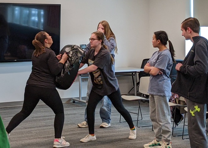 Lindsey Daehnke from Strictly Self Defense held a teen self-defense workshop at the library in February. Participants learned a variety of techniques to keep themselves safe in various situations., and left class feeling empowered! Check out some photos from the class below:
