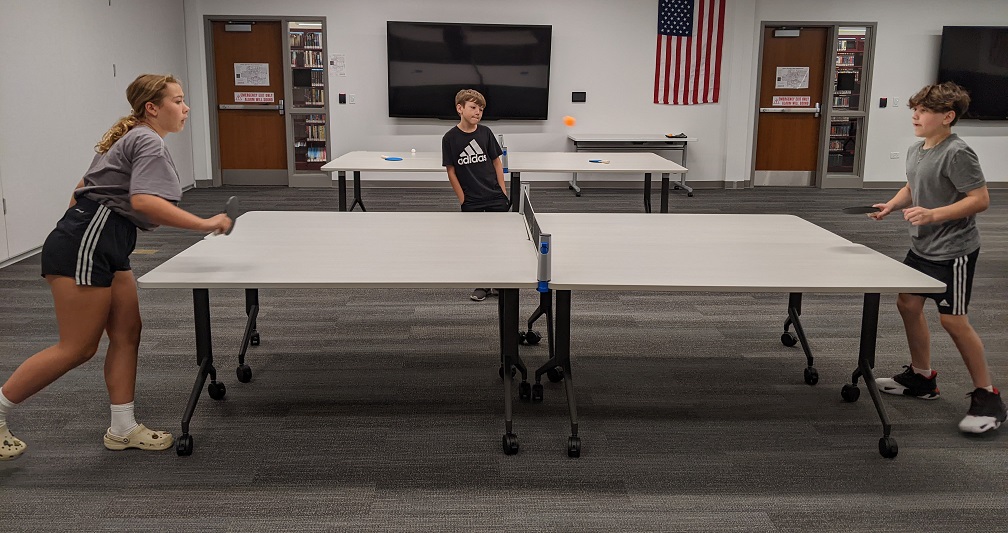 Table tennis? In the library?! Yes! We opened up the our event space and learned the basics of table tennis, then worked on our skills as we challenged one another to matches. Our teen participants did great! Extra library staff were recruited to provide them with additional opponents, but did not fare well! 🙂 Enjoy some photos from the event below: