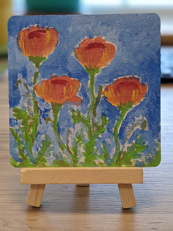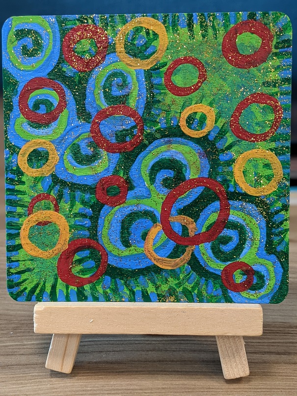 Teens (grades 6-12) can pick up a Teen Take Home kit starting September 1, 2021, and create their own tiny work of art. Kits include a 3×3 canvas and easel, a selection of acrylic paints, and a paintbrush, and will be available at the library’s Information Desk while supplies last! 1 kit per teen. If you would like to share your creations with us, you can submit photos using the form below. We’d love to see what you made and will add your creation to our Tiny Art gallery (see below)!