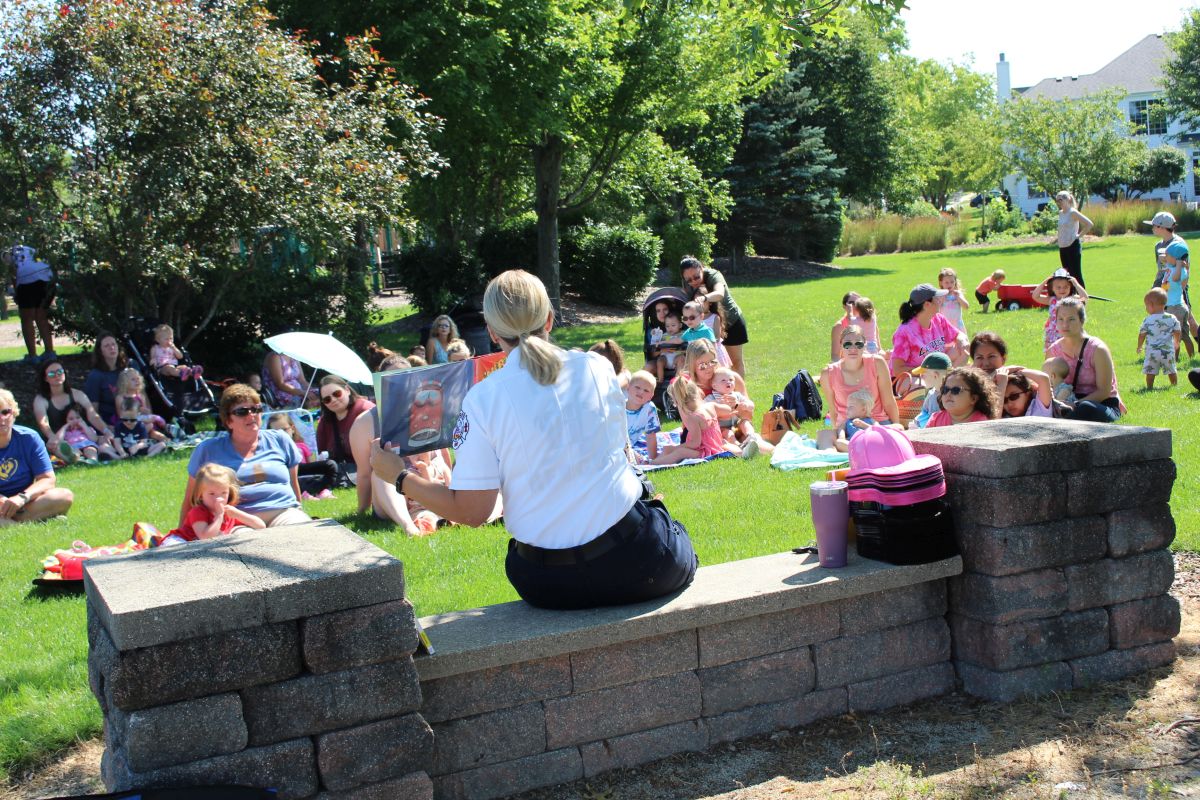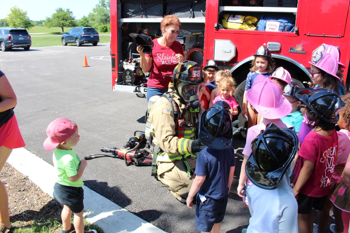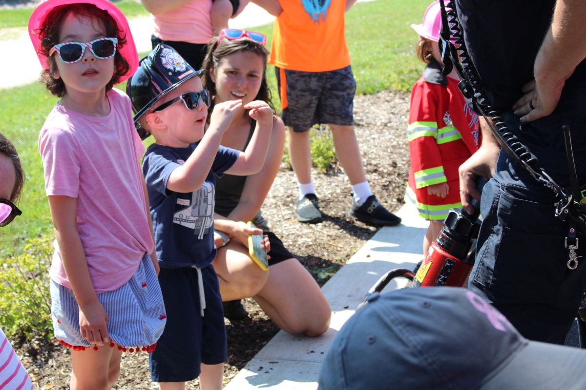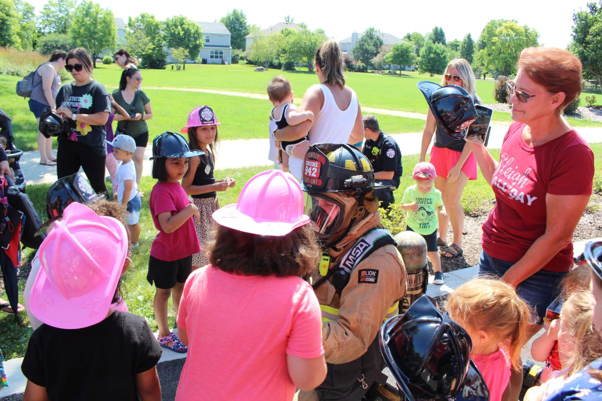 At this week’s VIP Community Story Time Firefighter Kelly came to the park to read some fun firefighter-themed stories. She also gave away a pink or black fire helmet before the firetruck arrived. A big thank you to Huntley Fire Protection District for coming to our VIP Community Story Time, and a special thank you to Firefighter Chris for showing everyone how to put on protection gear!
