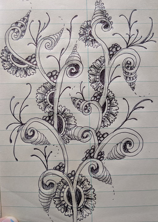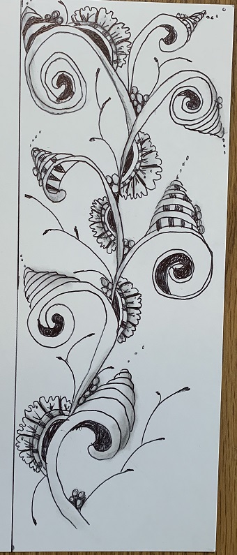 Annie Reiser, certified Zentangle instructor, guided participants through the creation of a bookmark using several different tangles (primarily the Springkle tangle) in a live virtual class she presented for the Huntley Area Public Library in June 2020. This gallery showcases some of the pieces created by attendees.